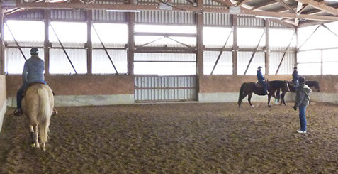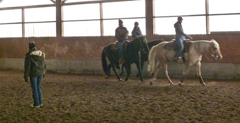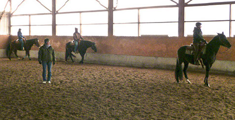 Railwork-Kurs am 17.12.: Eine Teilnehmerin: „Allen hat es riesig Spaß gemacht! Hintereinander herzureiten ist nicht so leicht, wie man denkt! Jeder darf überholen, muss sich aber im richtigen Tempo wieder eingliedern. Das beste war, dass wir individuelle Schwächen auch separat geübt haben. Wir waren durchgefroren, aber rundum zufrieden!“
