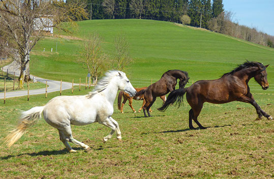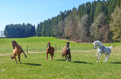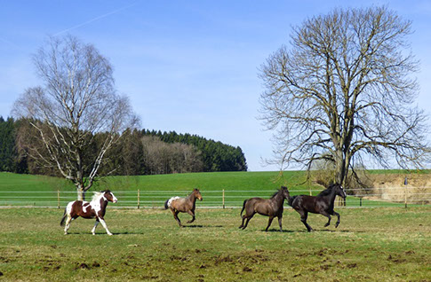 10.04.2015: Endlich Wetterbesserung! Ausgelassene Pferde eröffnen auf den Q-Stables die diesjährige Weidesaison!