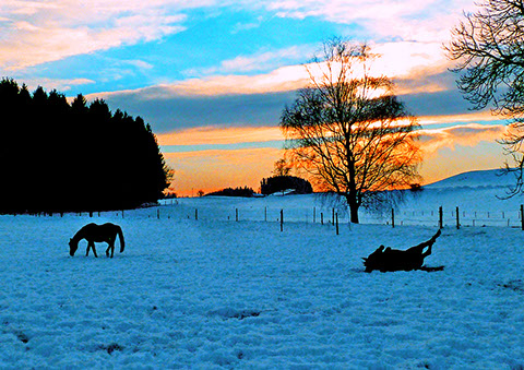 20.01.2015: Gesehen von Petra Winter: Vormittag, klirrende Kälte – ist es nicht wunderschön bei uns auf den Q-Stables?