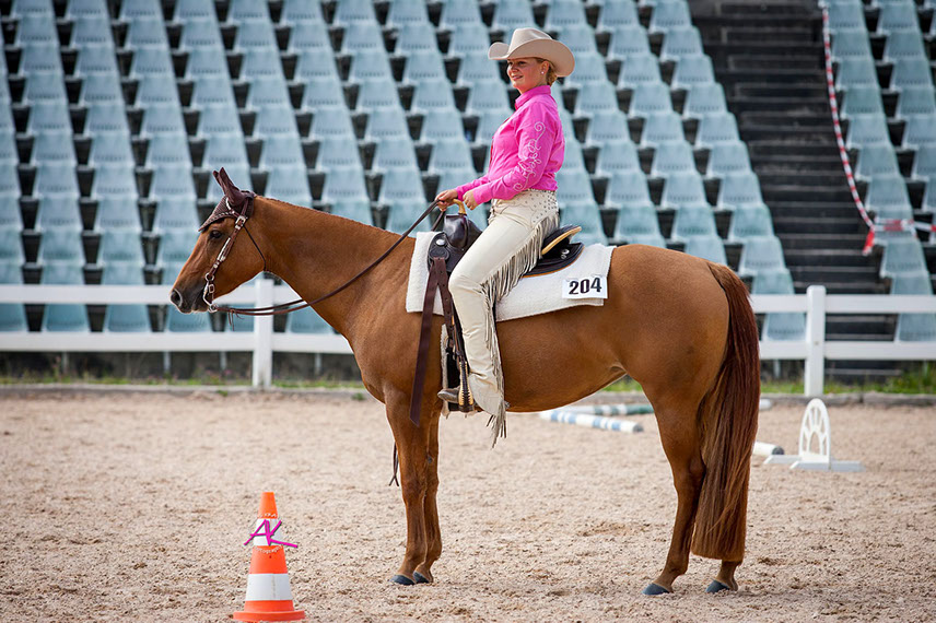Diana und Sunny sind bei allen Ranch-Disziplinen ganz vorne mit dabei! Neben anderen Siegen und Platzierungen erreiten sich Diana und Sunny gegen eine starke Konkurrenz die Silbermedaille in der Senior Ranch Riding. Herzlichen Glückwunsch zum Reserve Champion!
