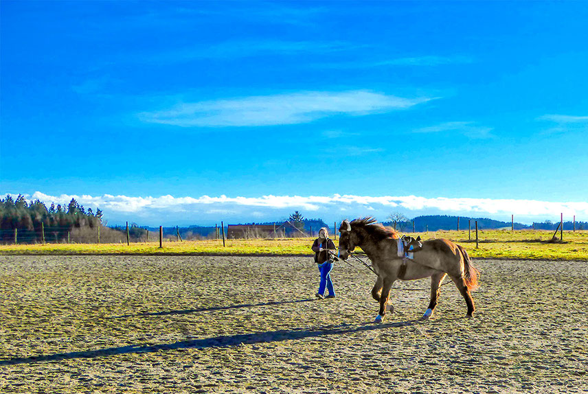 19.03.2016: Endlich ist es ist soweit: Nach der Winterpause ist unser Reitplatz wieder geöffnet! Laura, Petra, Hexe und Lena genießen es als erste – aber sie sind nicht lange allein!